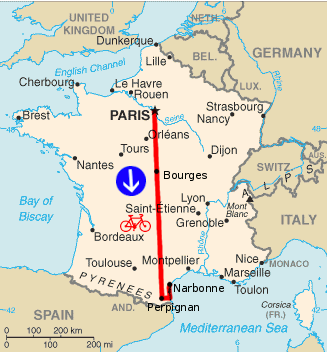 nia starto en Parizo, 1000 km for: la Mediteranea maro
