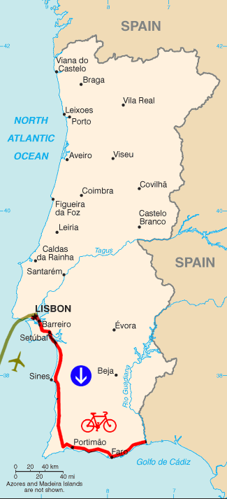 Ni trankviliĝas, kiam ni alvenas en Lisbono, niaj bicikloj vojaĝis ja