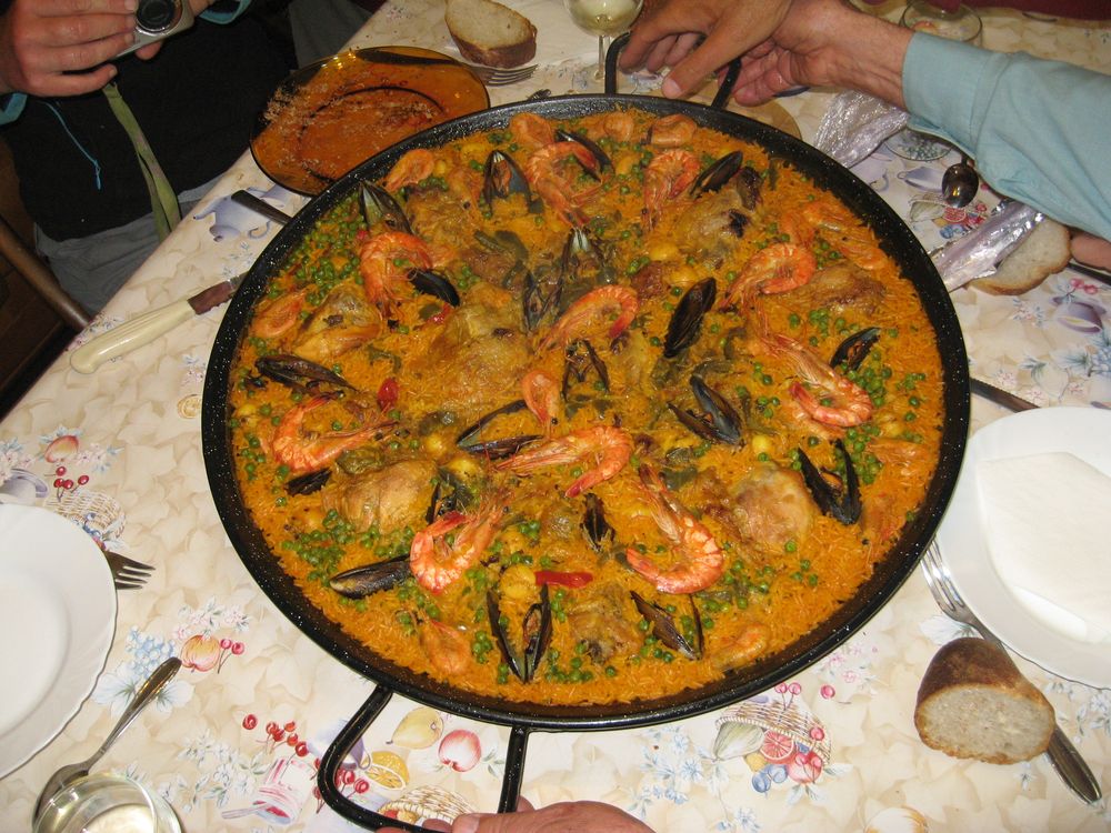 Nia preferata plado dum la vespermanĝo: paelo, frandata en familio kaj
