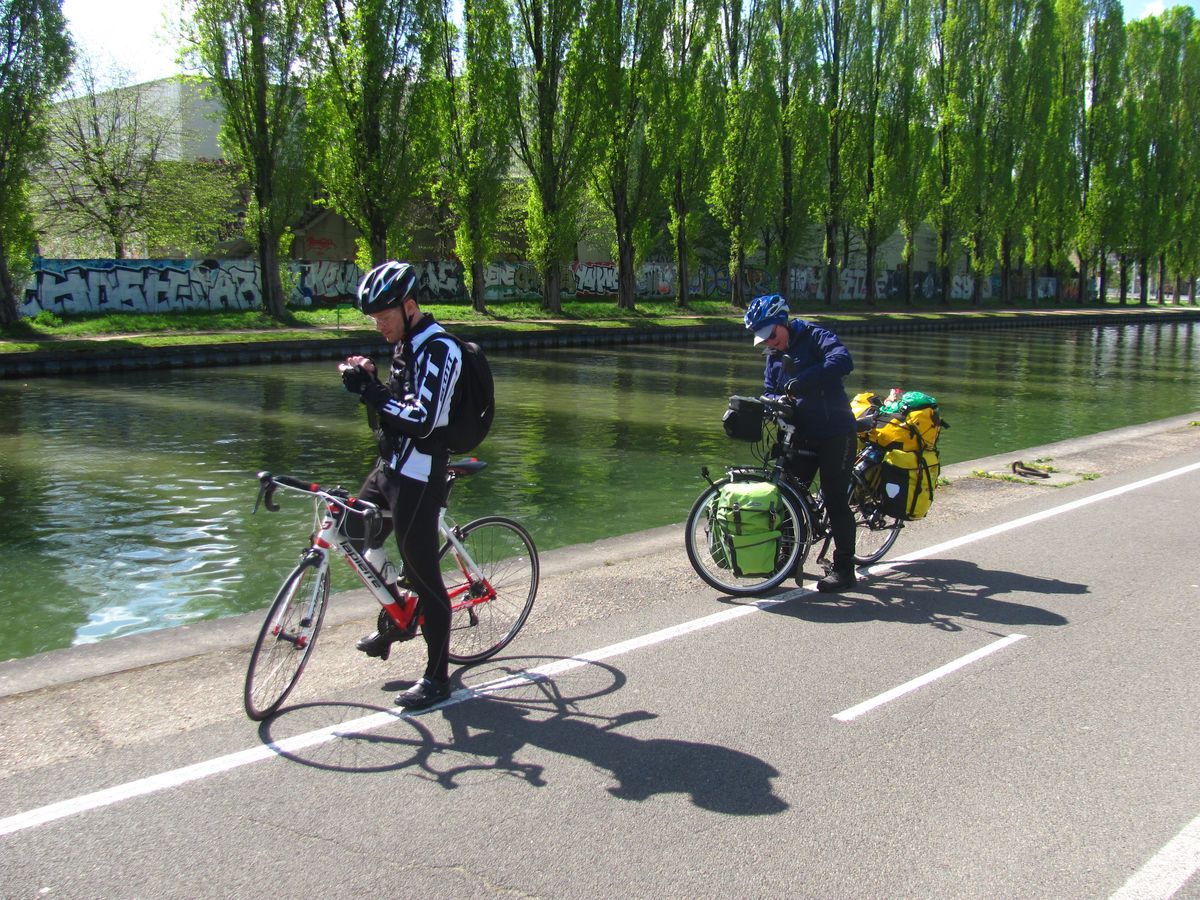 Survoje : Journée tranquille passée à rouler sur la longue piste cyclable le long du canal de l'Ourcq et sur les petites routes de la région parisienne. Trankvila tago, biciklante sur la longa bicikla vojo laŭ la kanalo Ourcq kaj sur vojetoj de la Pariza regiono. |