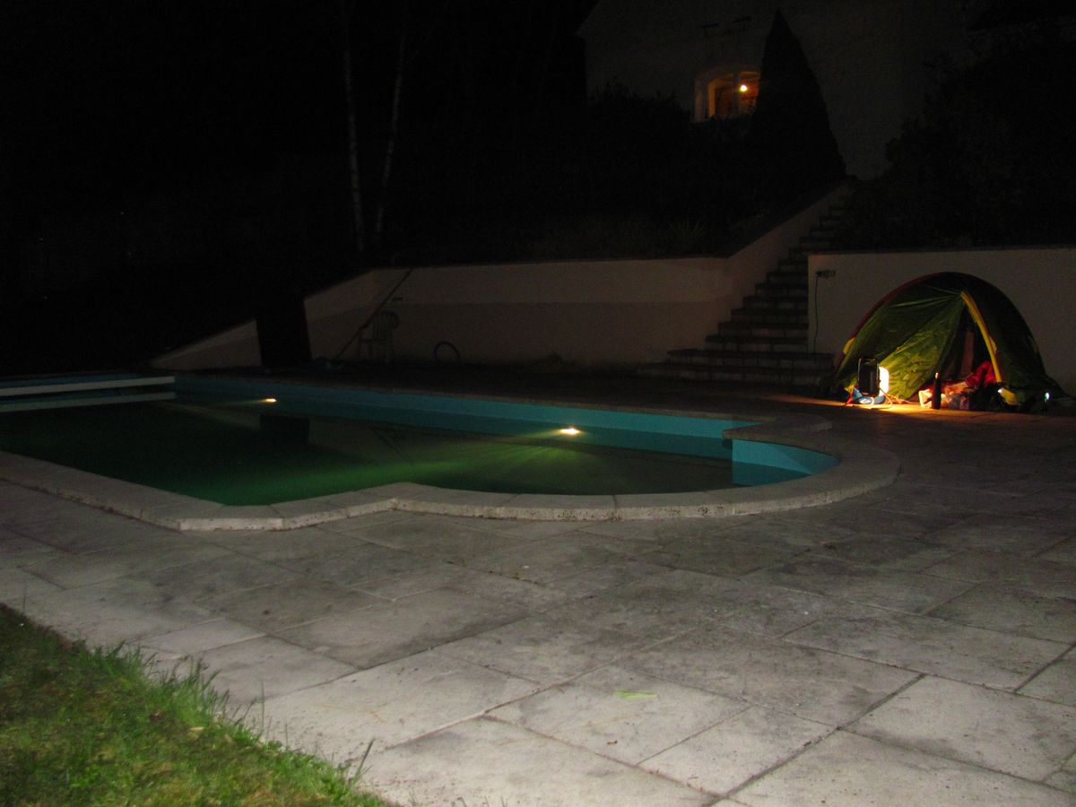 : Nous sommes accompagnés à vélo par Arnaud, un collègue de Cyrille, le seul qui a eu le "courage" de rouler à 10 km/h sur une petite cinquantaine de bornes. Bicikle akompanas nin Arnaud, kolego de Cirilo, la sola kiu "kuraĝis" veturi je 10 km/h dum nur apenaŭ 50 km. |
