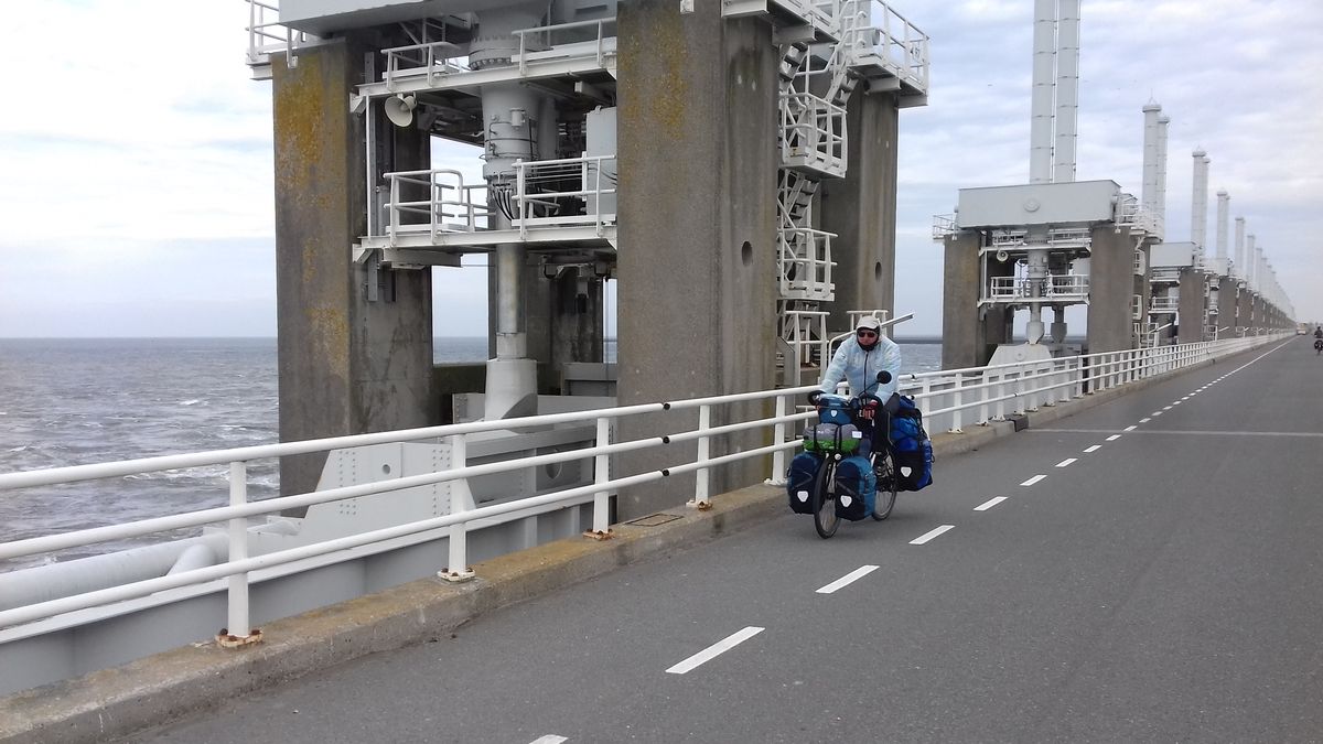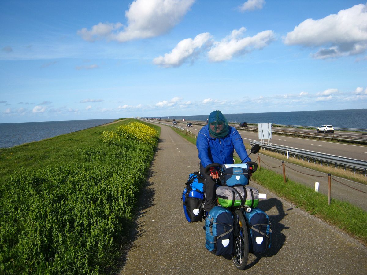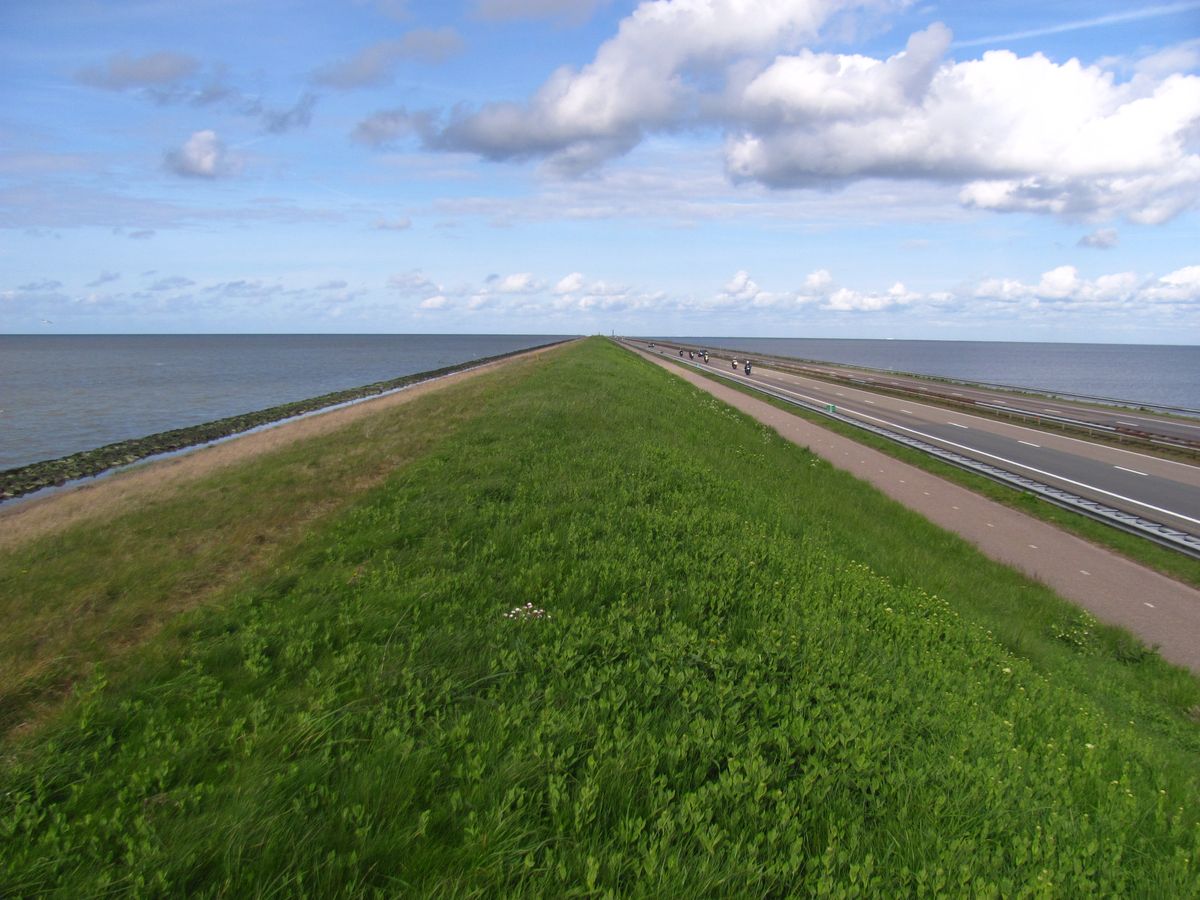 de la mer, sur la digue de 30 km de long reliant la Hollande