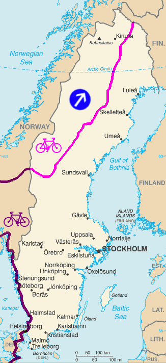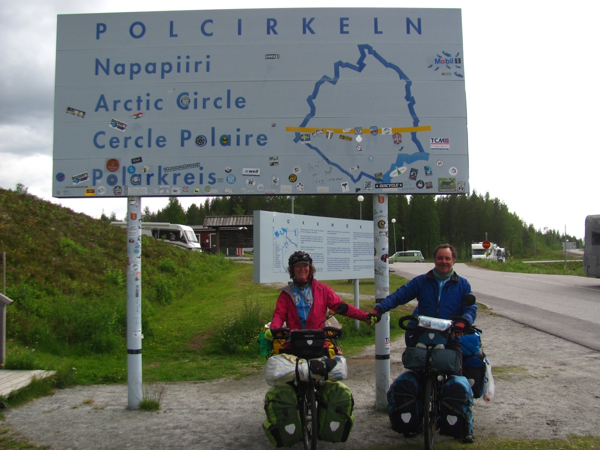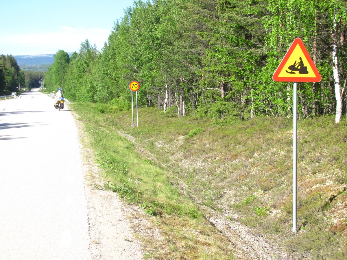 Survoje : Franchissement du cercle polaire à proximité de Jokkmokk. Transpaso de la cirkla poluso proksime de Jokkmokk. |
