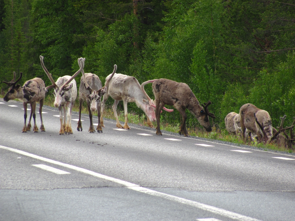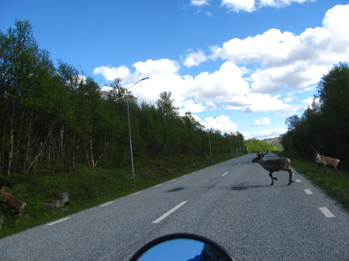![]() ![]() 09/07/2017 - En route / Survoje : Rencontre d'un troupeau de rennes au détour d'un virage. Renkonto kun boacaro post paso de vojkurbo. |