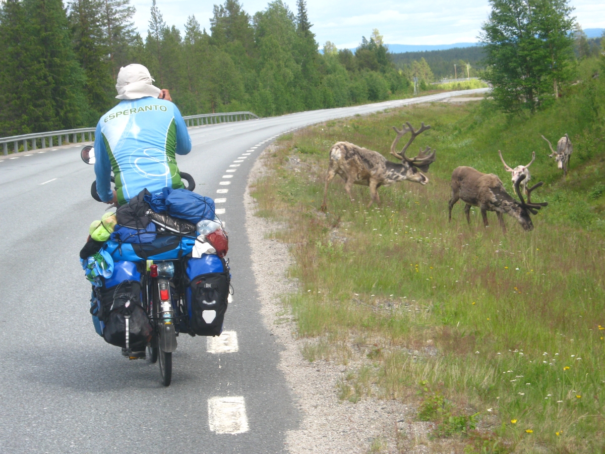 ![]() ![]() 09/07/2017... - En route / Survoje : Petit à petit, nous entrons en territoire lapon, peuple de nomades répartis sur quetre pays. Iom post iom, ni eniras la teritorion de Sameoj, nomada popolo dissemita en kvar landoj. |