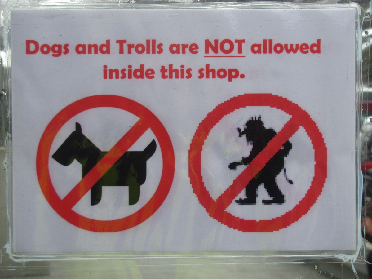 Survoje : Quelque-chose nous dit que nous approchons de la Route des trolls. Supozeble, ni estas proksimiĝantaj al la Trol-vojo. |