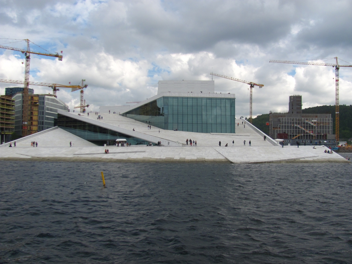 - Oslo : Architecture moins classique pour l'opéra, qui semble plonger dans la mer. Malpli klasika arkitekturo ĉe la operejo, kiuj aspektas, kiel ĝi plonĝus en la maron. |