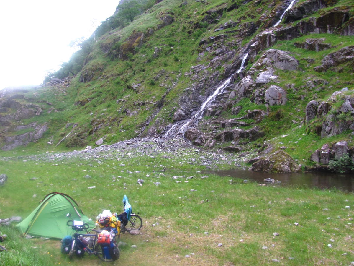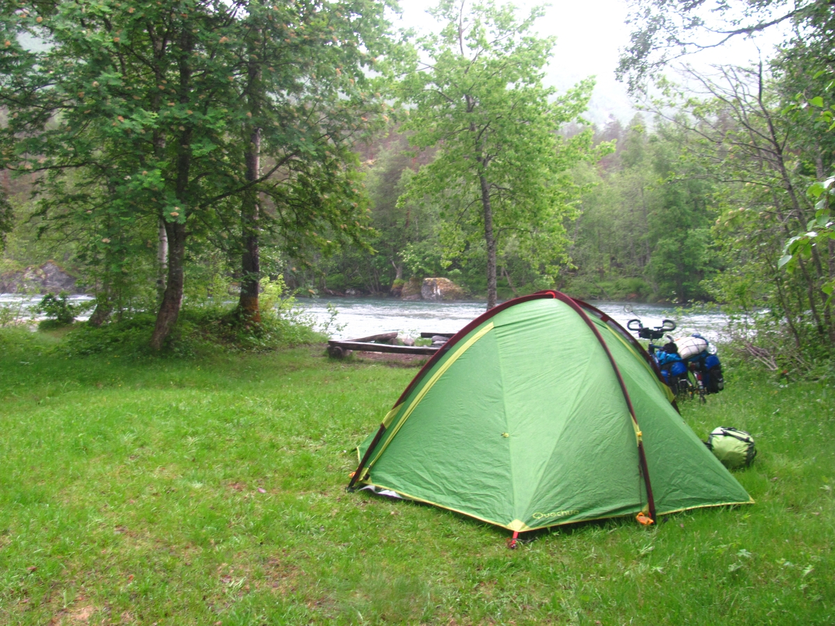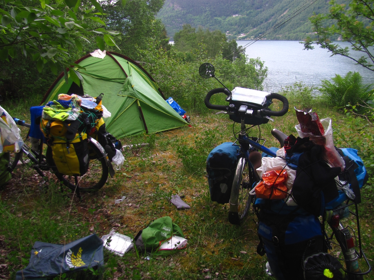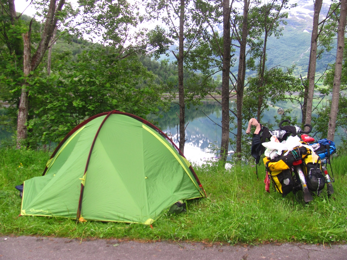 Survoje : Camping sauvage avec vue sur fjord. Sovaĝa tendumado kun vido al fjordo. |