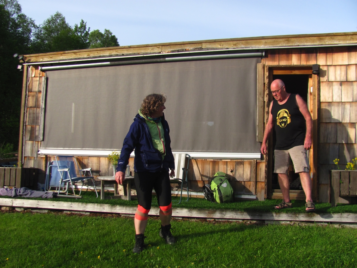 ![]() ![]() 01/06/2017 - Engelsrud : Jann Arne nous met à disposition pour la nuit sa cabane avec vue imprenable sur le lac. Il nous propose aussi de nager, mais nous trouvons le fond de l'air un peu trop frais pour cela. Jann Arne disponigas al ni por la nokto sian kabanon kun ne egalebla vido al lago. Li ankaŭ proponas, ke ni naĝu, sed ni taksas la aeron iomete tro malvarma por tion fari. |