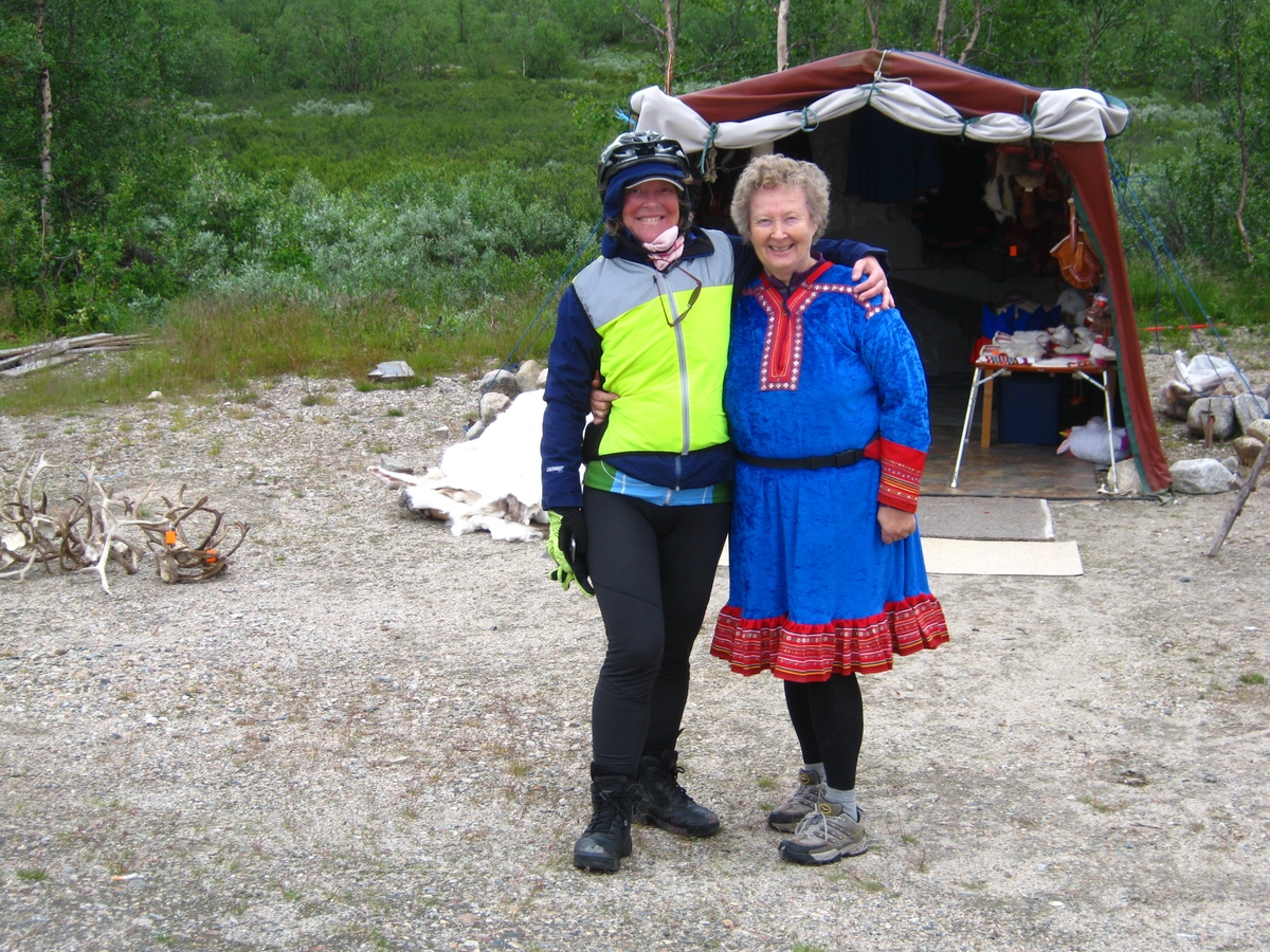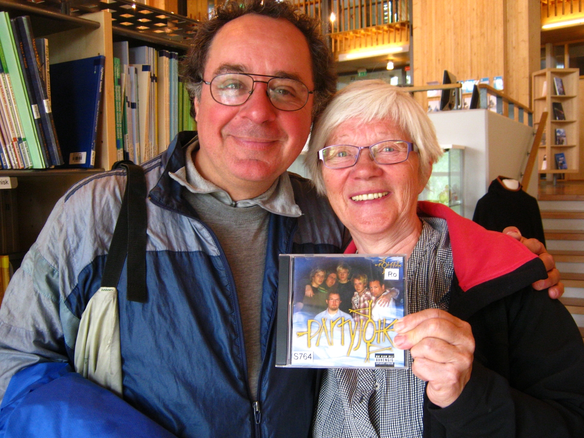 : Marit est fière de nous présenter un CD réalisé par son petit-fils qui allie musiques électronique et traditionnelle lapone, en vente à la boutique du parlement des lapons de Norvège. Marit fiere prezentas al ni KD-n, kiun realigis ŝia nepo per miksaĵo de muzikoj elektronika kaj samee tradicia, vendatan en la butiko de la parlamento de la Norvegiaj sameoj. |