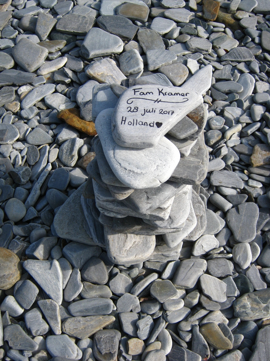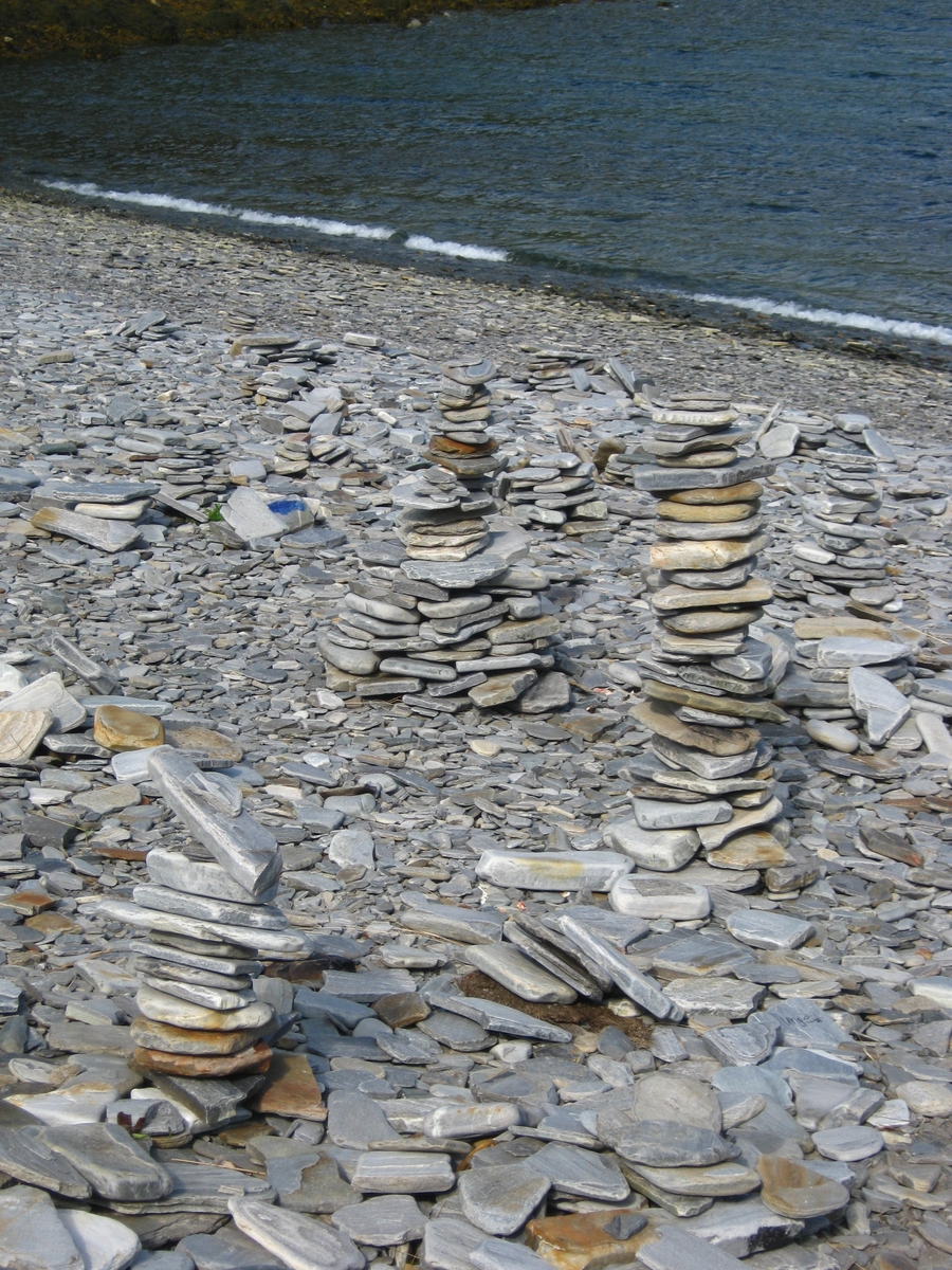 ![]() ![]() 29/07/2017 - En route / Survoje : Une plage où les visiteurs aiment réaliser des tours de galets en équilibre. Strando kie vizitantoj ŝatas konstrui ekvilibritajn turojn el rulŝtonoj. |