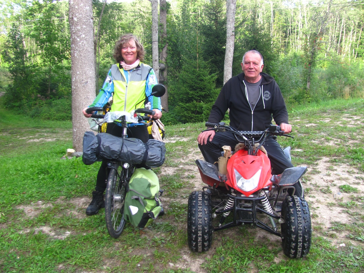 ![]() | ![]() ![]() 28/08/2017 - En route / Survoje : Peter et Nina nous invitent à dormir dans leur chalet de jardin disposant d'une chambre et d'un sauna que nous pouvons utiliser. Puis nous partageons leur repas et leur petit-déjeuner le lendemain. Peter kaj Nina invitas nin por dormi en ilia ĝardena ĉaledo entenanta dormĉambron kaj saŭnon, kiun ni rajtas uzi. Poste, ili disdividas kun ni siajn vespermanĝon kaj matenmanĝon la morgaŭon. | ||||||||||||||||||