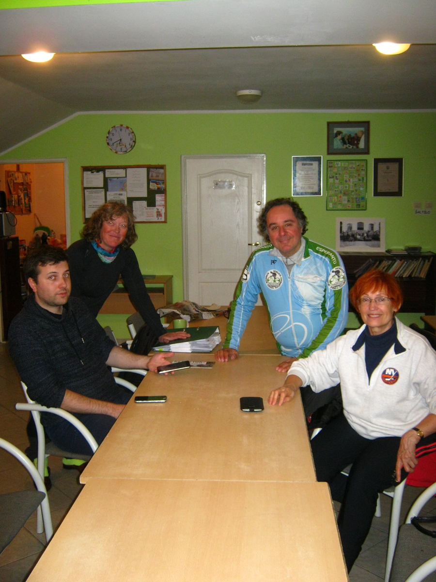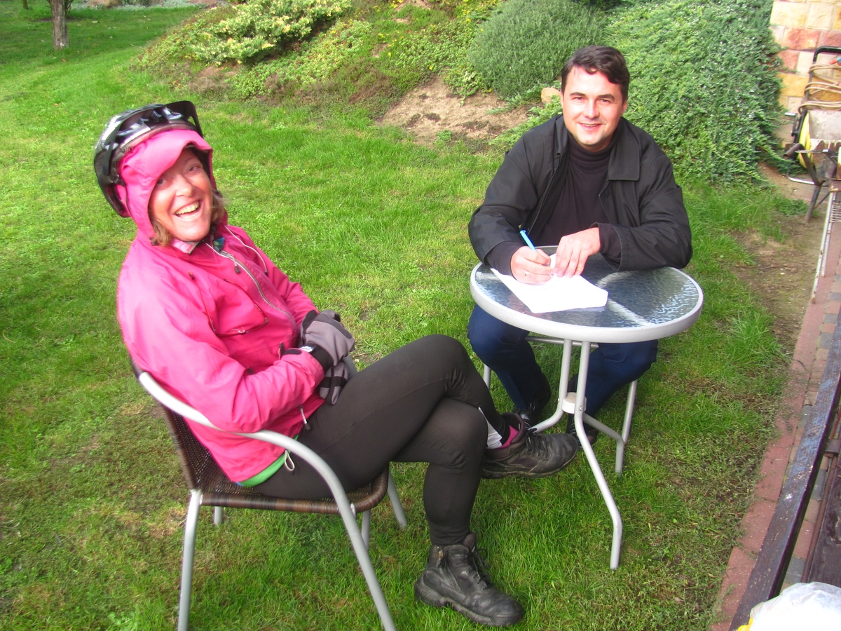 - Medyka : Lukas, employé de la mairie, nous interviewe pour publier un article dans le bulletin de la ville contre la promesse de nous faire parvenir une copie. Mais, à ce jours, nous n'avons toujours rien reçu. Lukas, dungito de la urbodomo, intervjuas nin por aperigi artikolon en la urba gazeto kontraŭ la promeson sendi al ni kopion. Sed, ĝis nun, ni ricevis nenion. |