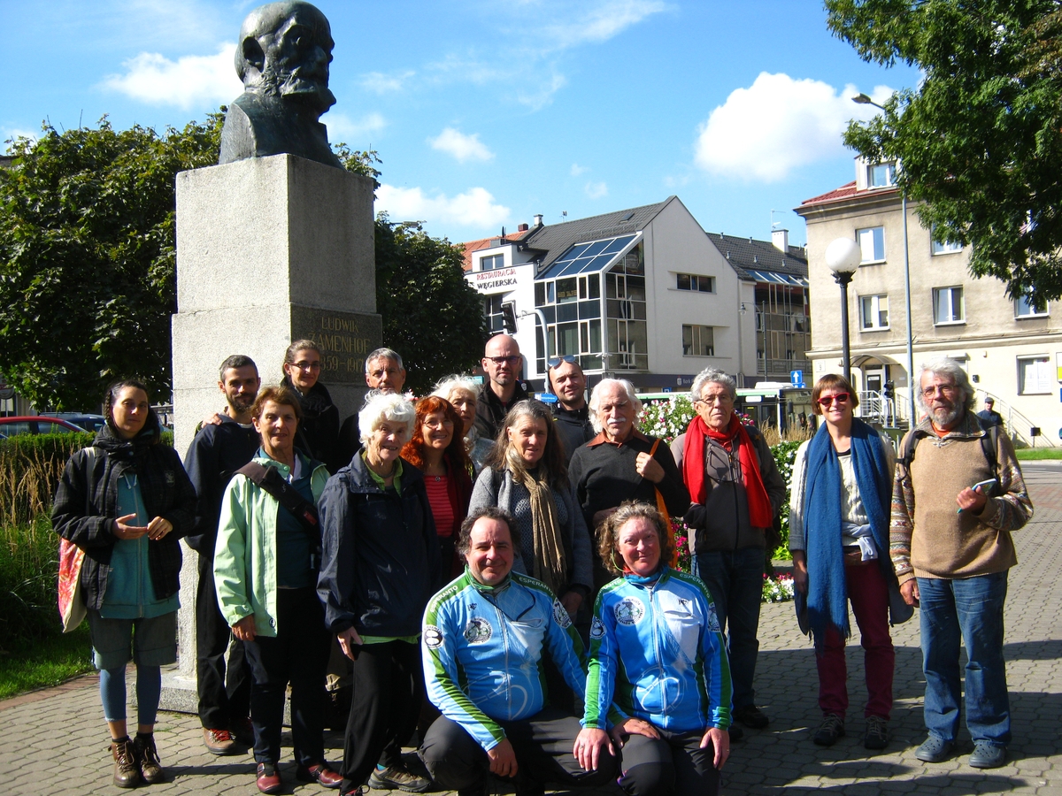 ![]() ![]() 15/09/2017 > 21/09/2017 - Białystok : Bialystok est un haut lieu de l'espéranto, puisque que c'est là qu'est né le docteur Zamenhof et qu'il y a élaboré la Langue Internationale. Entre autres, on trouve en ville une rue à son nom, un buste à son éfigie, et une rue des espérantistes. Bjalistoko estas grava loko pri Esperanto, ĉar tie naskiĝis la doktoro Zamenhof, kiu tie prilaboris la Lingvon Internacian. Inter alie, la urbo entenas straton je lia nomo, buston pri li, kaj straton je esperantistoj. |