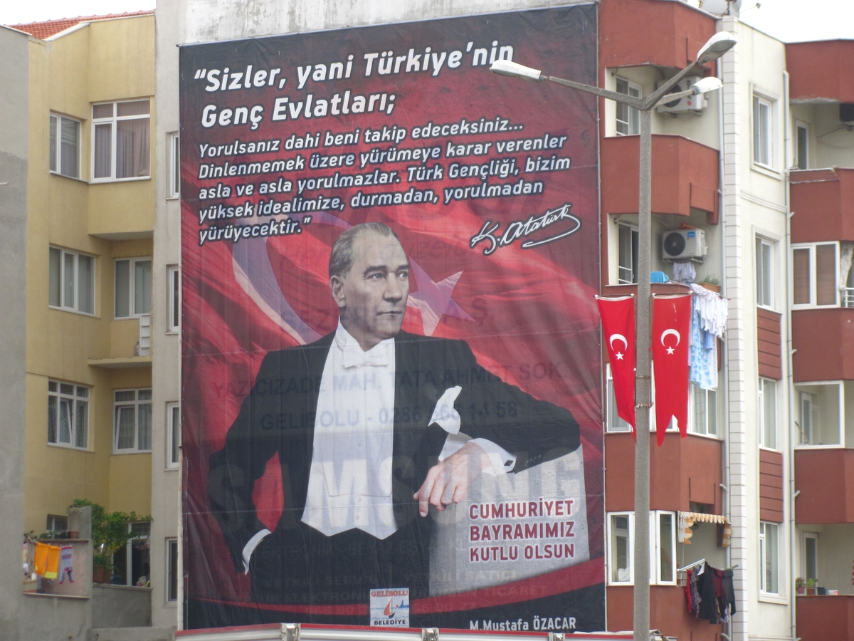 ![]() ![]() 05/11/2017 > 23/12/2017 - Turquie / Turkio : Sculpture dans la roche, affiches géantes, statues, livres, mausolée, stade, aéroport... Impossible de passer à côté des manifestations d'amour des Turcs envers Mustafa Kemal, le père fondateur de la nation turque, officillement surnommé Atatürk (littéralement Turc père) par le parlement. Skulptaĵo en rokego, afiŝegoj, statuoj, libroj, maŭzoleo, stadiono, flughaveno... Ja ne eblas maltrafi la elmontrojn de amo de turkoj al Mustafa Kemal, la fondisto de la turka nacio, oficiale kromnomita Atatürk (laŭvorte Patro de Turko) fare de la parlamento. |