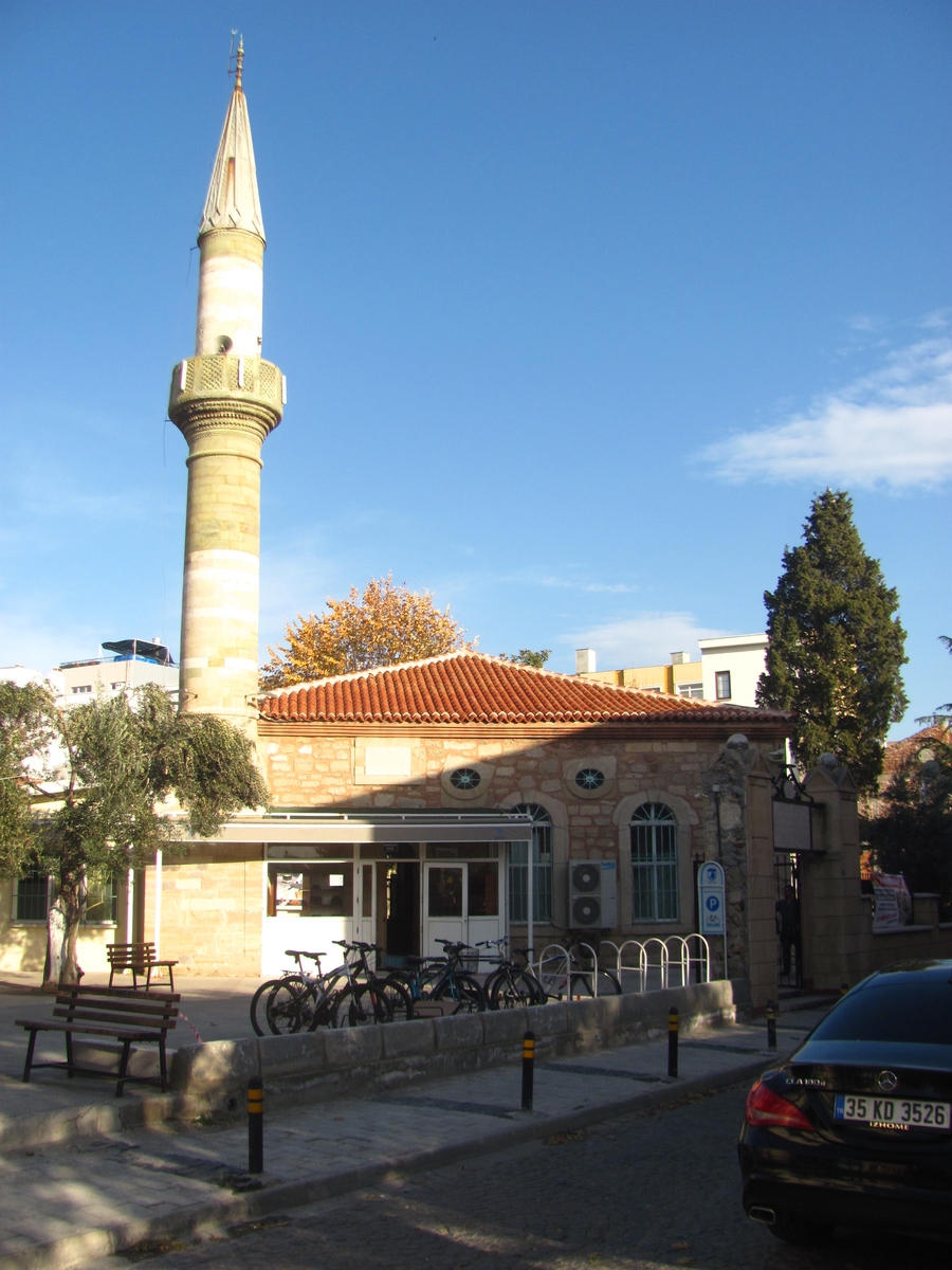 - Izmir : Tour horloge et mosquée octogonale sur le front de mer. Horloĝturo kaj okangula moskeo ĉe la marbordo. |