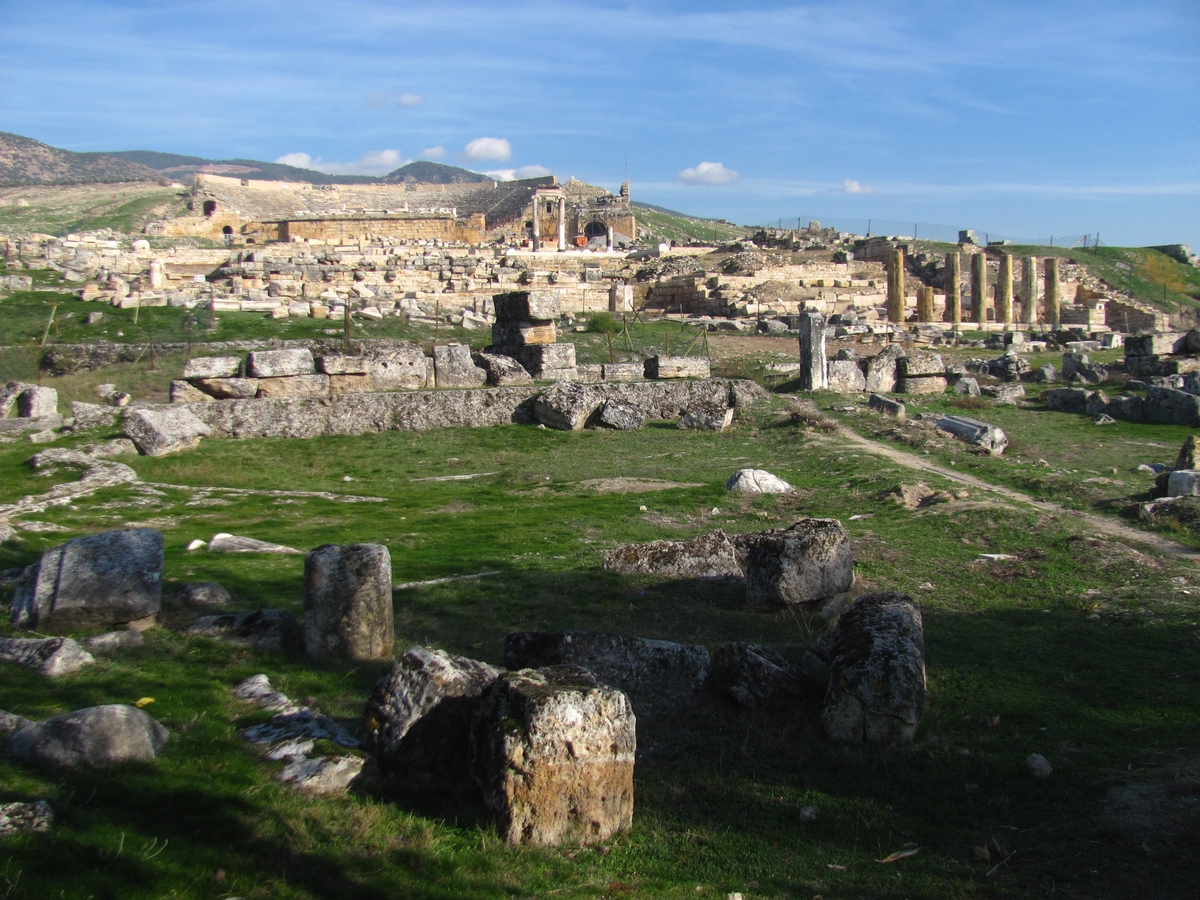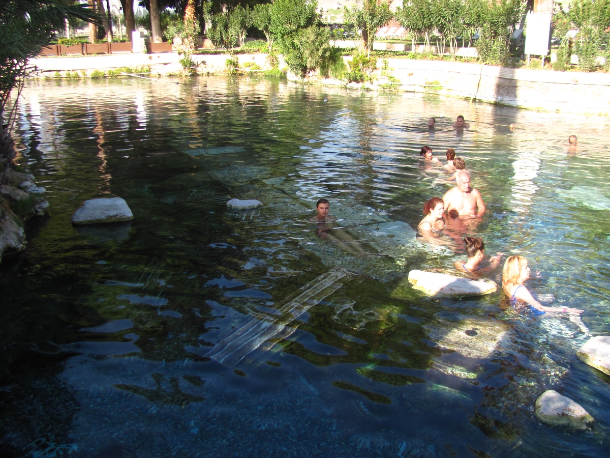 - Hierapolis : Les sources d'eau chaude de Pamukkale alimentent aussi une des piscines les plus orinales au monde, permettant de se baigner sur les ruines de Hiérapolis. La varmakvaj fontoj de Pamukkale ankaŭ plenigas iun el la plej originalaj naĝejoj en la mondo, ebligante baniĝi surper la ruinoj de Hierapoliso. |