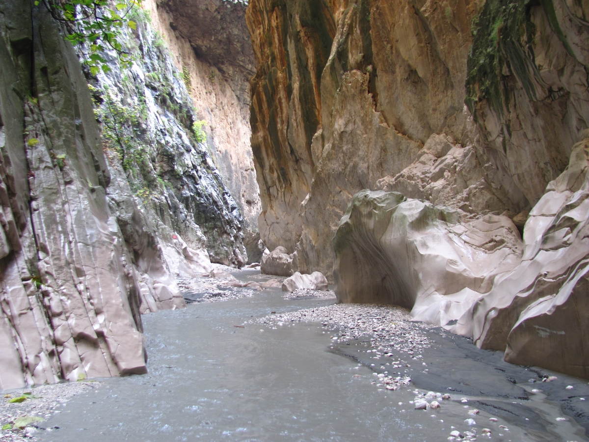 ![]() ![]() ![]() 18/12/2017 - En route / Survoje : Nous remontons à pied sur quelques kilomètres le torrent dans les gorges de Saklıkent. Des parois d'une centaine de mètres de haut et des roches de toute beauté. Ni kelkkilometre paŝas kontraŭ la fluon de la torento en la canjono de Saklıkent. Temas pri vandoj ĉirkaŭ cent-metrojn altaj kaj belegaj rokoj. |