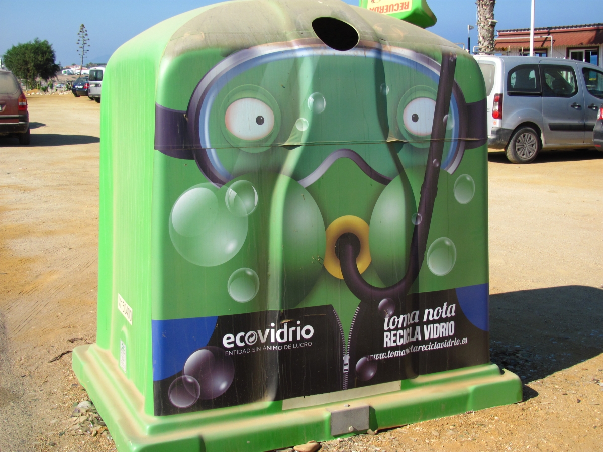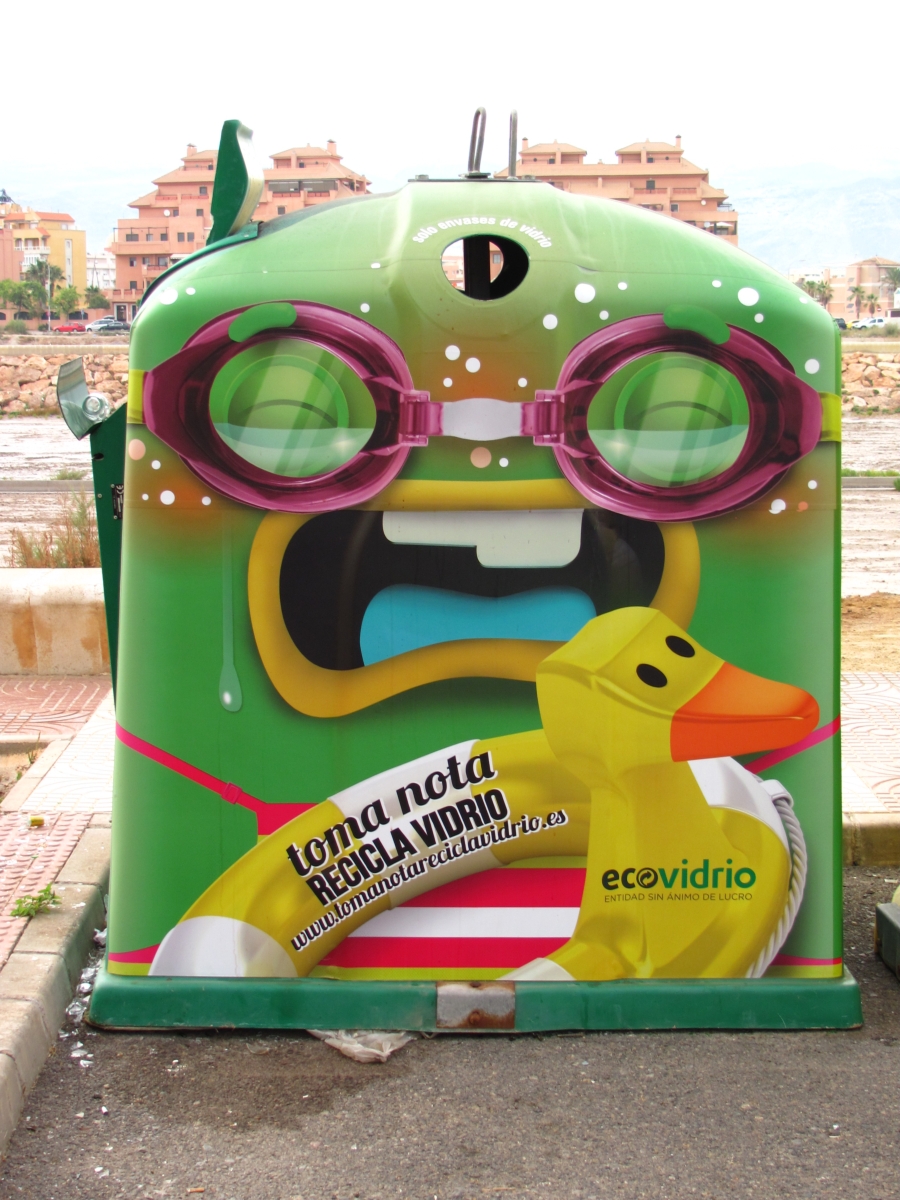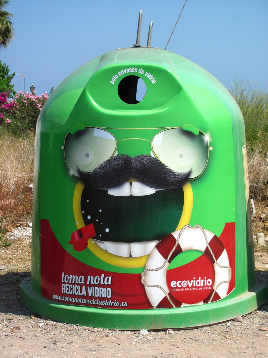 Hispanio klopodis igi recikladon de vitraj boteloj pli alloga.