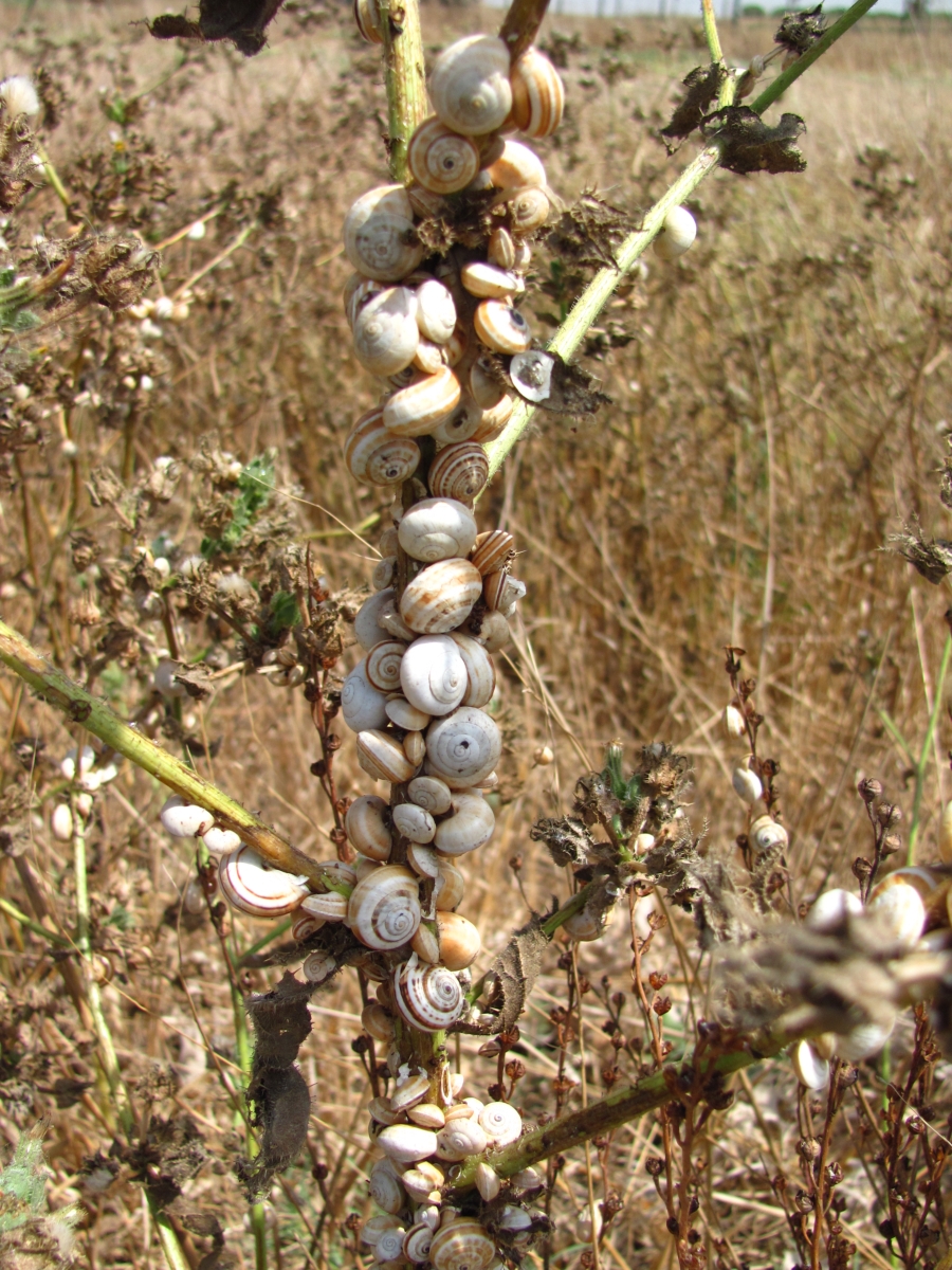 Amasoj da etaj helikoj invadis la arbustajn branĉojn kaj la fostojn