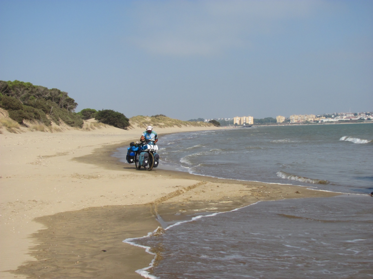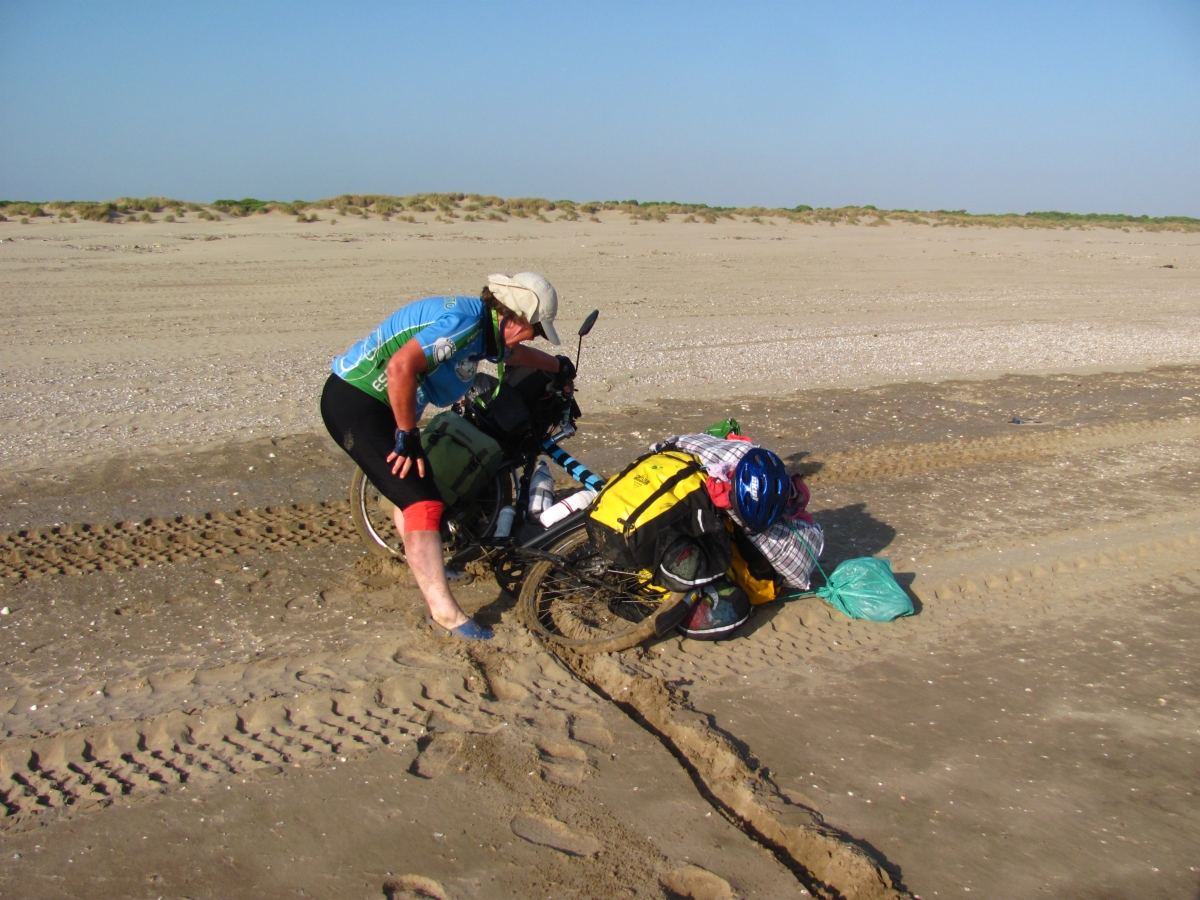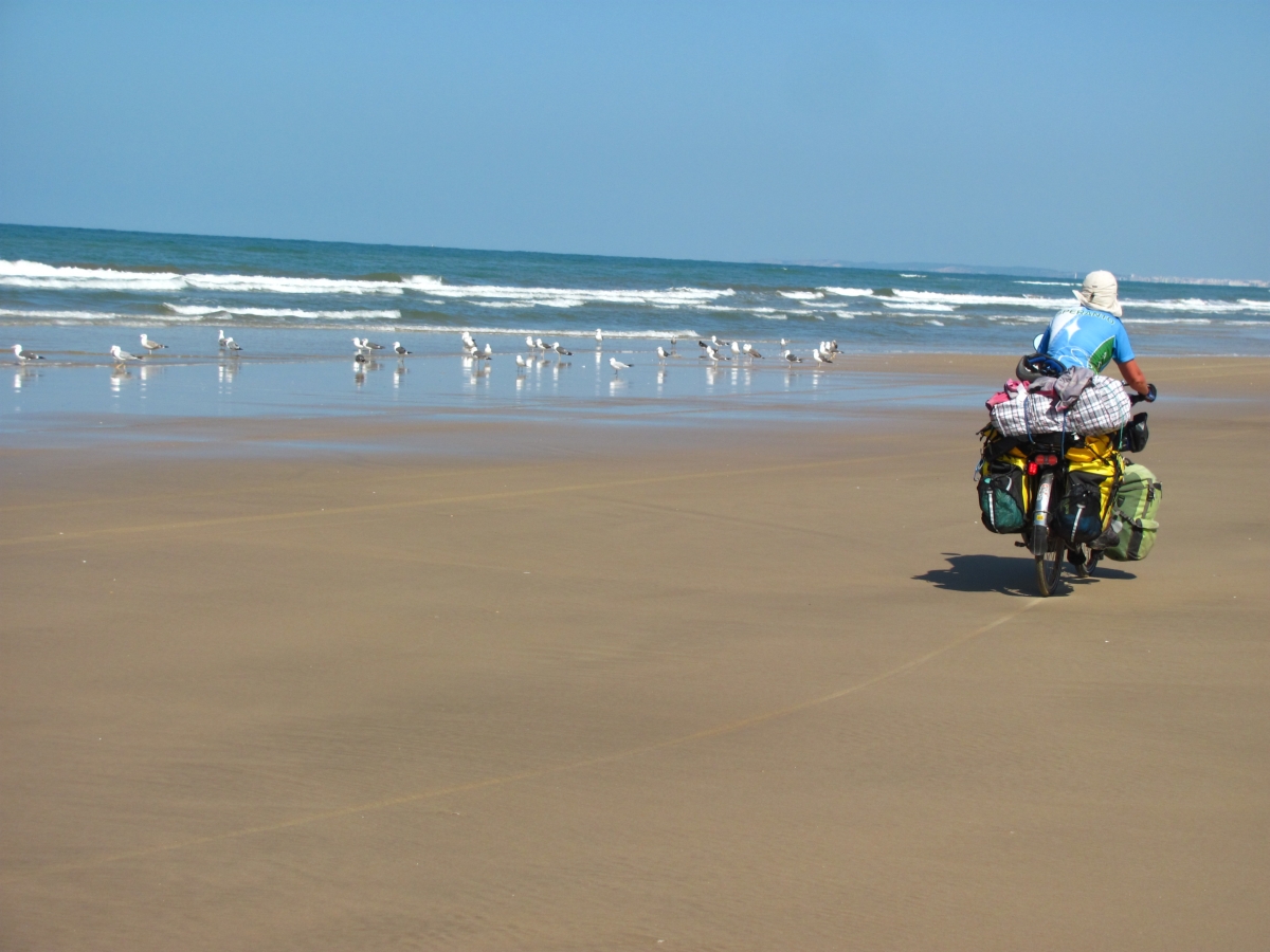 Eĉ sen vojoj, eblas laŭbicikli la marbordon je malalta tajdo, kiam la