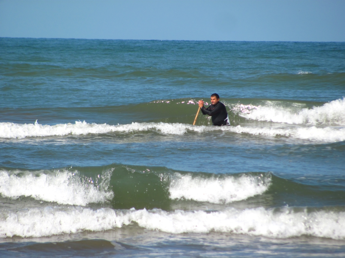 Iuj eniras for en la ondojn por trovi konkulojn.